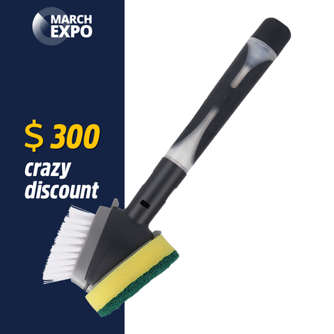 Masthome-Herramientas de limpieza de cocina inteligentes, olla de mango largo, esponja de cerdas PP tpr, cepillo de limpieza para lavar platos con dispensador de jabón